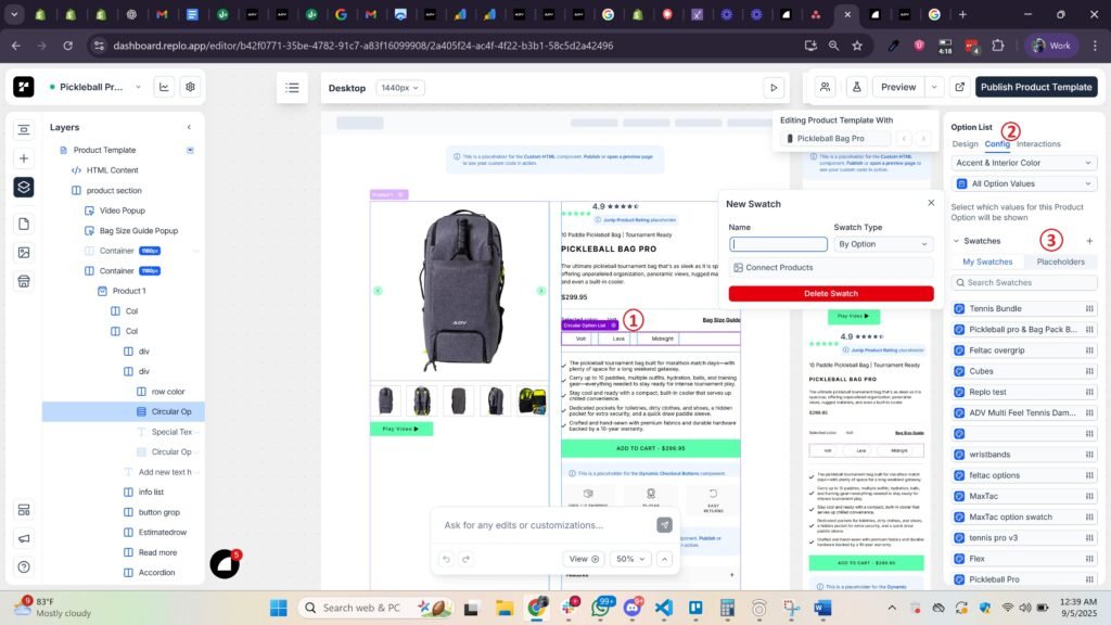 Method 1: Configure Variant-Specific Images using Swatches in Replo